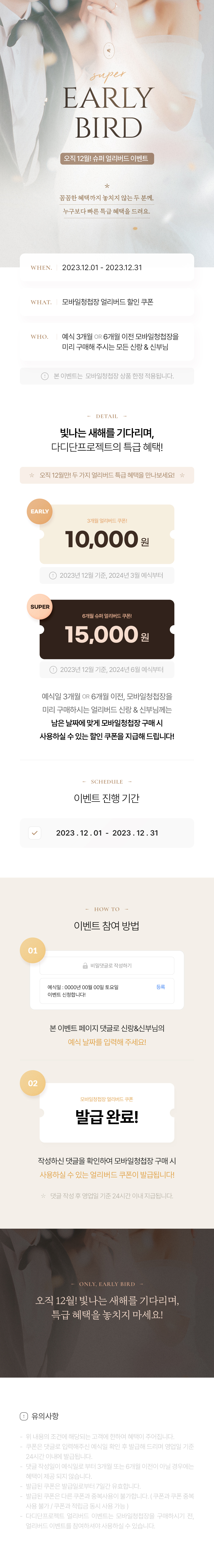 오직 12월, SUPER EARLY BIRD : 슈퍼 얼리버드 이벤트!
